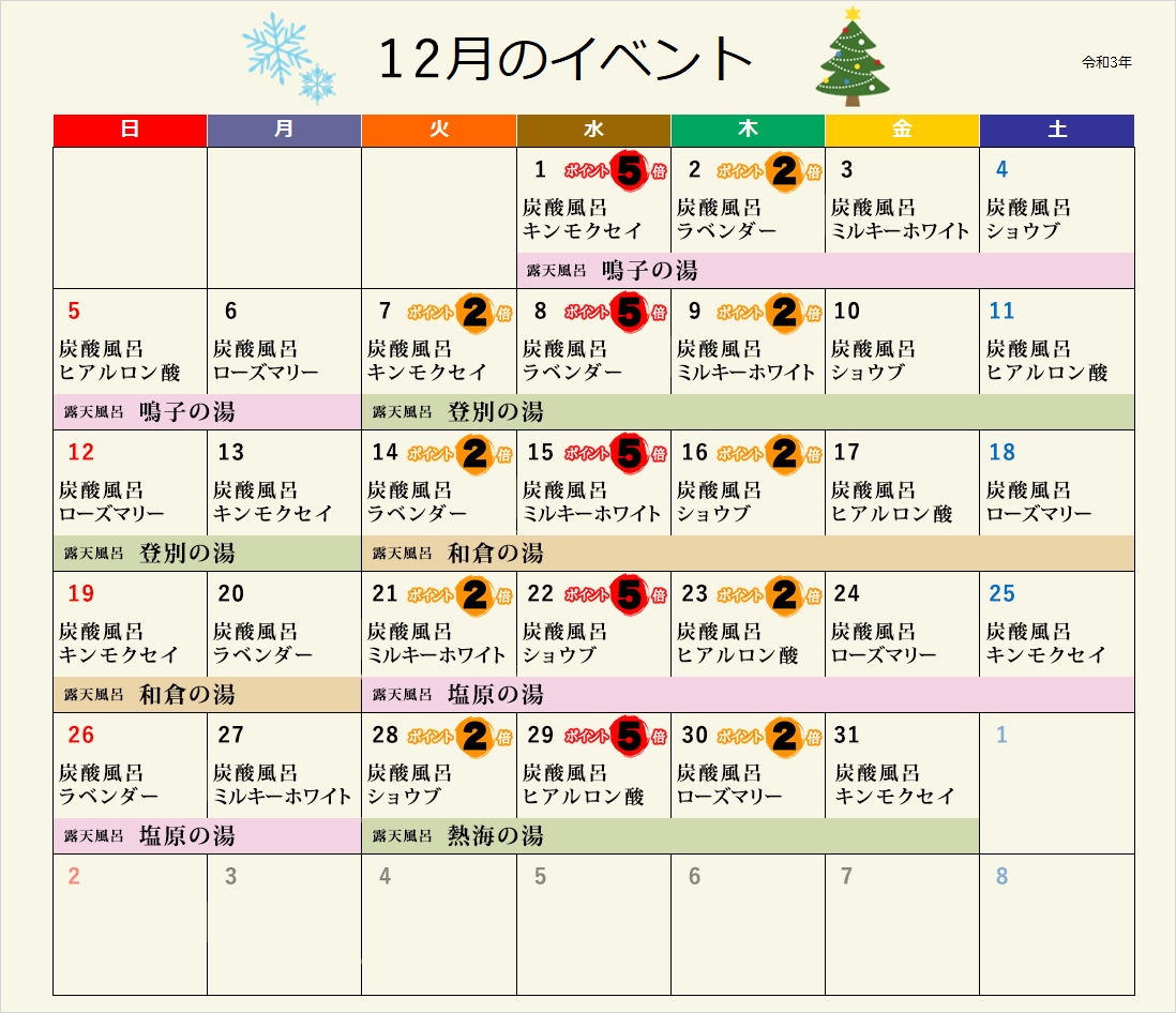 入浴料金改定のお知らせ